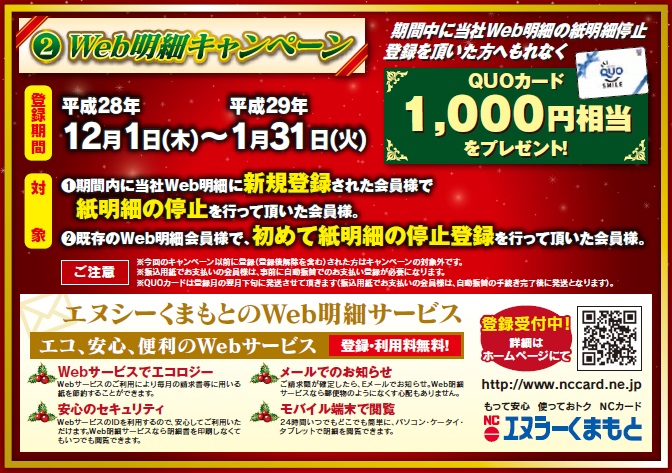 エヌシーくまもとからウィンターキャンペーンその②として